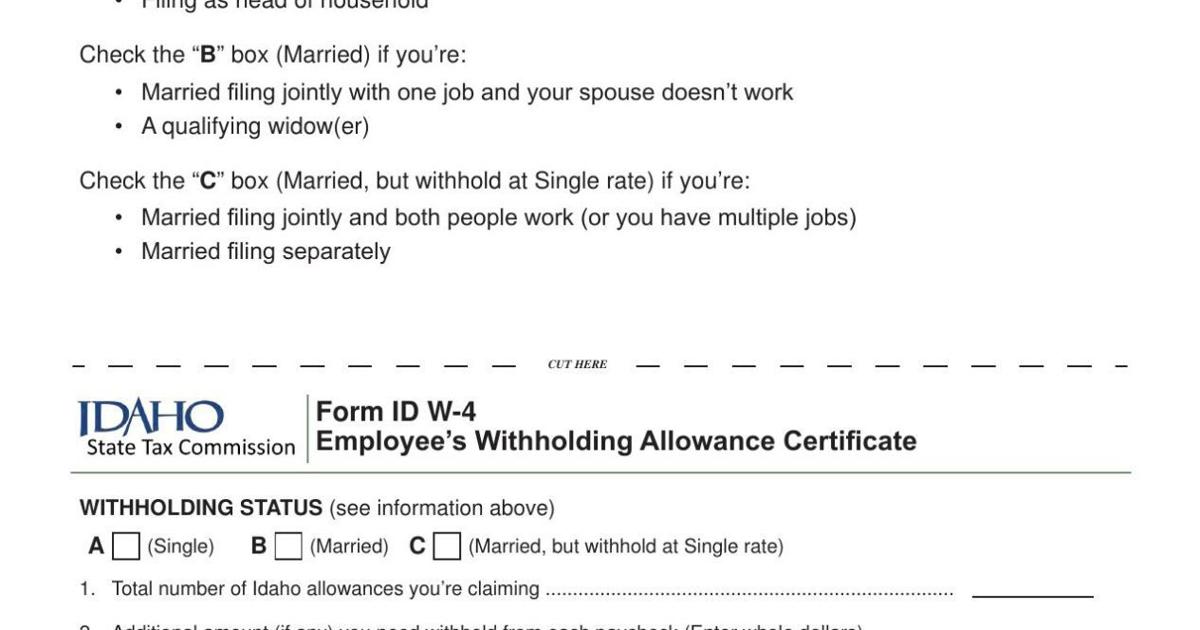 The Idaho State Tax Commission announced release of a new state Form ID W-4 Employees Withholding Allowance CertificateThe new form may be found on the agencys website and the agency plans to mail copies of the new form to the more than 70000 employers with Idaho payroll withholding accounts.