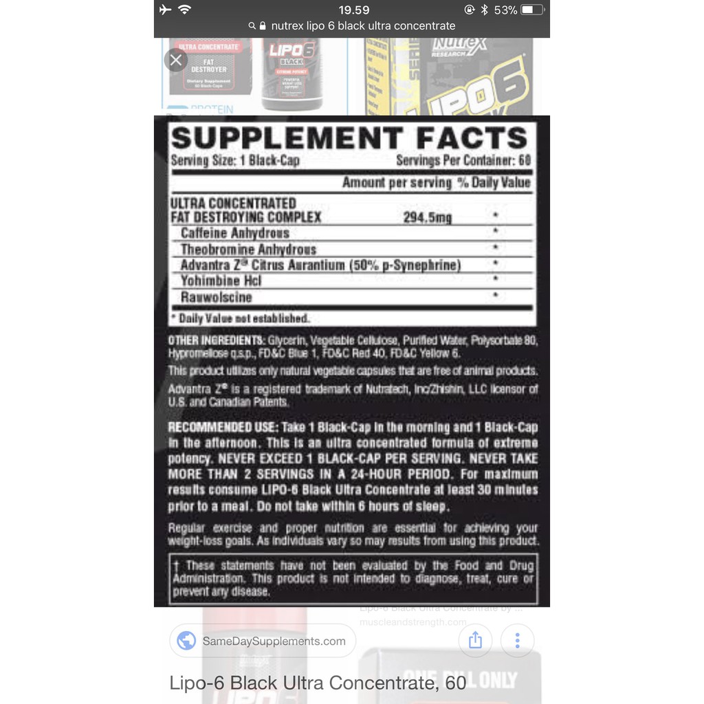 Low price supplements massive workout database nutrition guides much more at MS. Its so strong that you can never take more than one pill. As you can see for yourself Lipo 6 Black Hers Ultra Concentrate uses a fairly straightforward ingredients formula consisting of seven active ingredients.