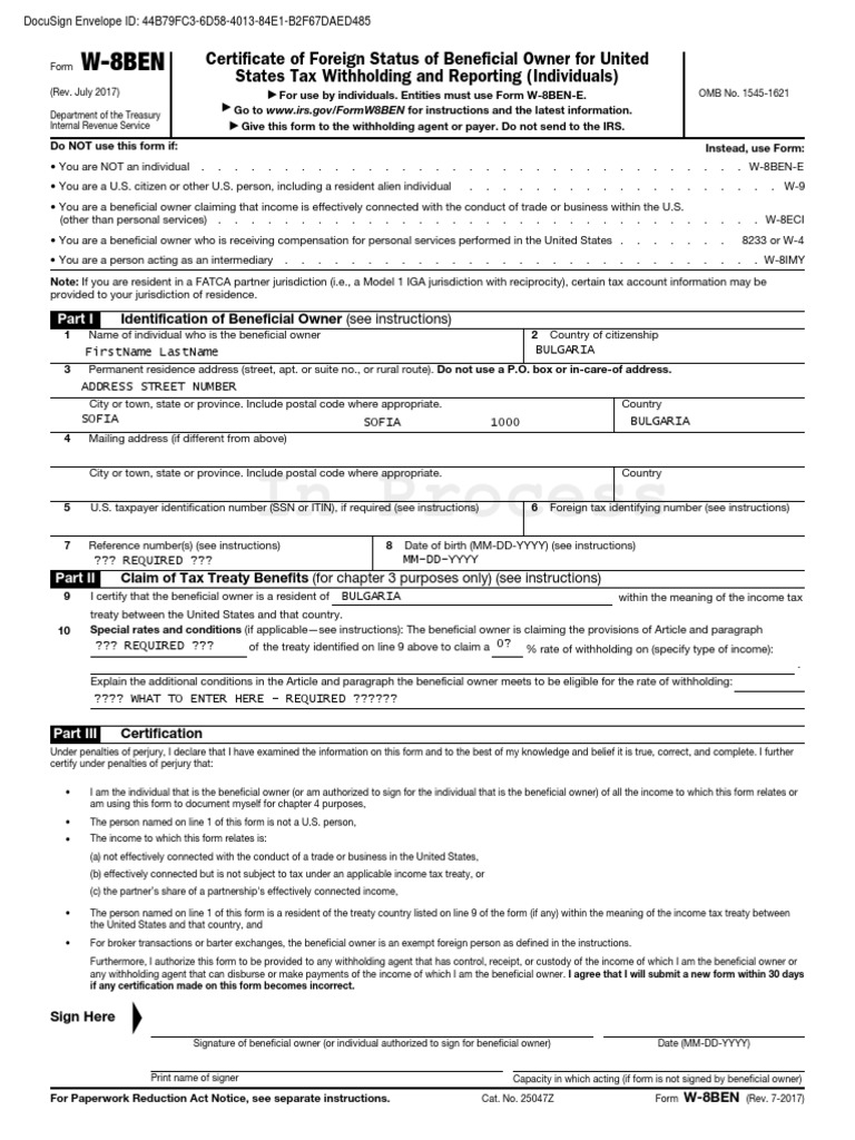 Form W 8ben Internal Revenue Service
