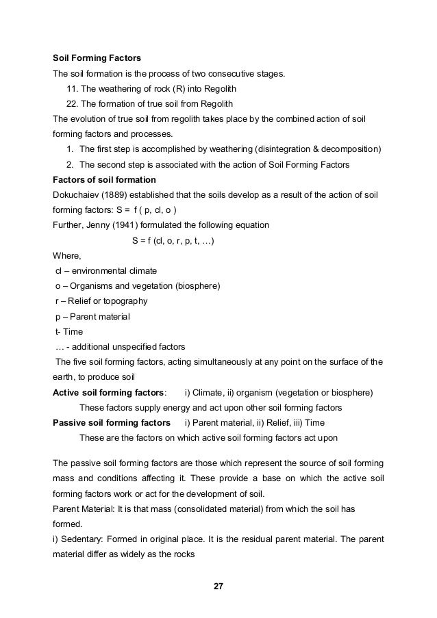These soil forming factors continue to affect soils even on stable landscapes. The degree of aging depends on the. SOIL FORMING FACTORS PART-1 Jennys soil formation equationactive soil forming factor.